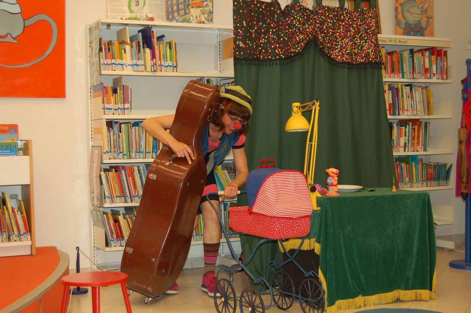 La sorpresa va ser de tots quan va començar a tocar tota mena de miniinstruments amb les mans i amb els peus! , a canviar-se de roba, a treure tota mena d'artilugis (com el seu cutxi-cutxi, que era un acordionet que duia dins un cotxet de nines) a fer malabars, a dirigir una nina que ballava amb un hula-hop al ritme d'una música impossible, a ballar i a cantar cançons tradicionals amb els nens absolutament entusiasmats amb la representació.